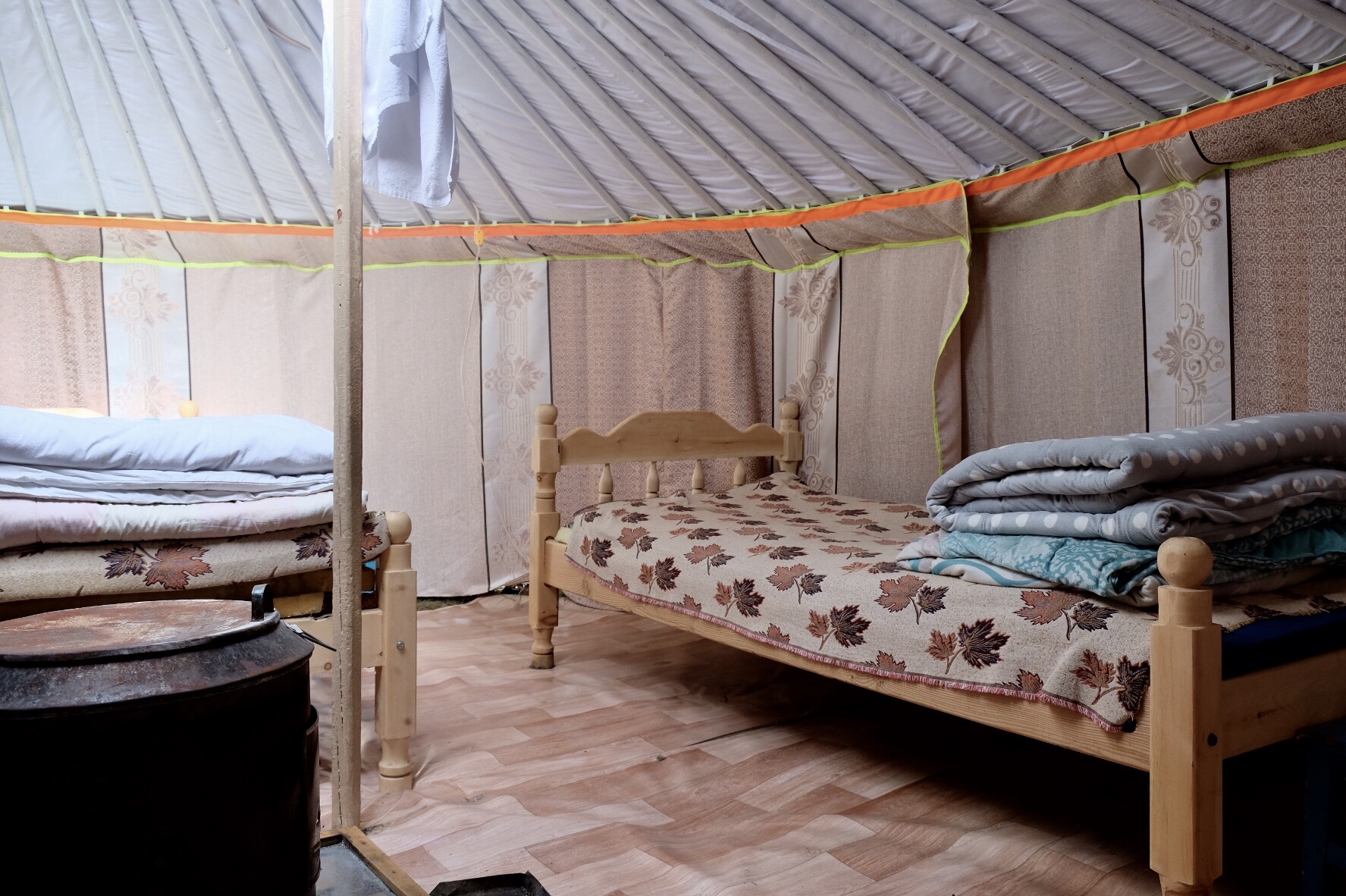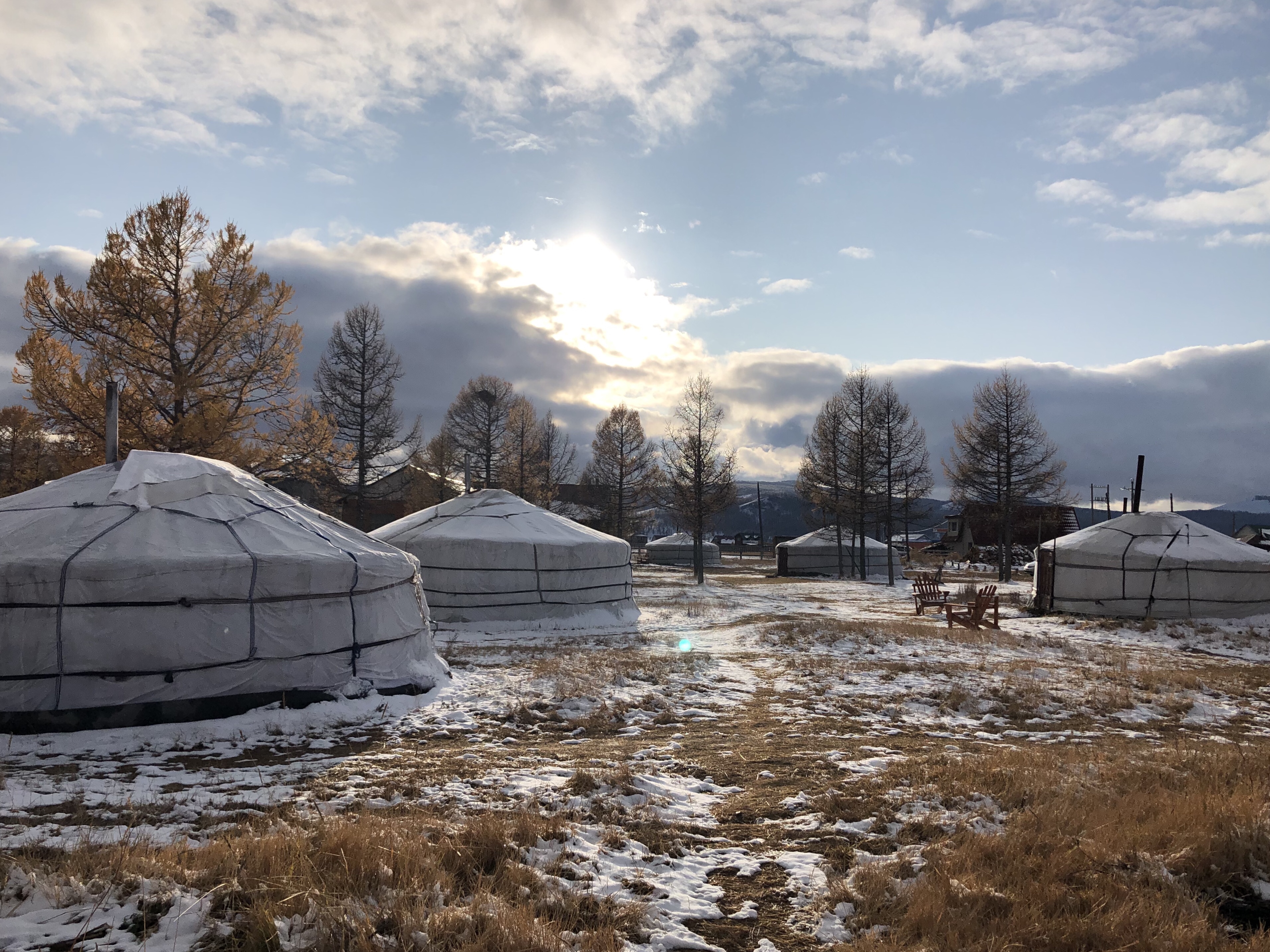 Le décor est placé. Dans cette bulle absolument hors du temps où mes yeux sont comblés, mes autres sens ne sont pas en reste. Loin d’Oulan Bator, la vie de chaque habitation, yourte ou maisonnette en bois, s’organise autour d’un poêle et l’odeur du feu de bois se diffuse dans chaque rue et chaque espace. À MS Guest House, un homme tout droit sorti d’un dessin animé et dont il m’est impossible de deviner l’âge (cinquante, soixante, soixante-dix ans ?) s’affaire sans cesse au bon maintien d’une chaleur ambiante. Le soir, avant que nous allions nous coucher, et le matin, vers 6 heures, quand nos paupières sont encore fermées mais que nos corps se crispent alors que le froid a regagné nos yourtes (il fait -15 dans la nuit de mercredi à jeudi…), le « fireman » pousse les portes en chantonnant, sa lampe frontale toujours allumée, et il démarre en quelques secondes un feu réconfortant. Indifférent aux « salmano » et « bayarla » (phonétiquement « bonjour » et « merci ») que je tente de lancer d’une voix endormie et d’un sourire encore rêveur, il ressort aussi vite qu’il est apparu. Les crépitements du bois et le souffle des flammes se font alors entendre, et une vague de chaleur vient m’envelopper et me replonge pour quelques heures dans un sommeil profond. Je passe des nuits extraordinaires.