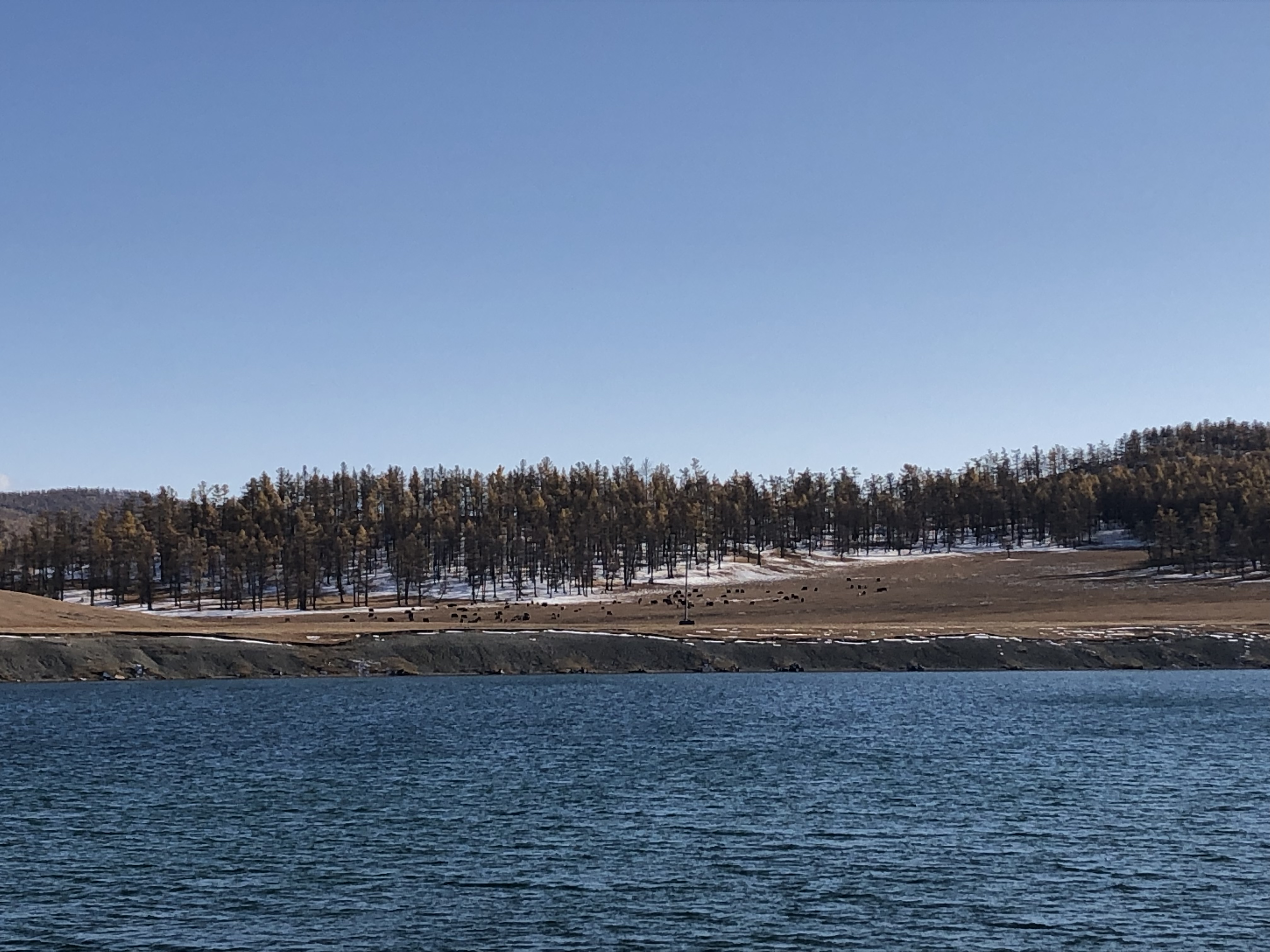 Quelques heures plus tard, nous sommes de retour à Hatgal. Cette parenthèse hors du temps se ferme le lendemain midi lorsque, après avoir fait une ultime promenade au bord du lac et pris le temps de saluer une dernière fois cette étendue de quiétude, je pars vers Mörön reprendre le bus pour Oulan Bator. Là, je rejoindrai un « tour » pour une semaine dans le désert de Gobi…