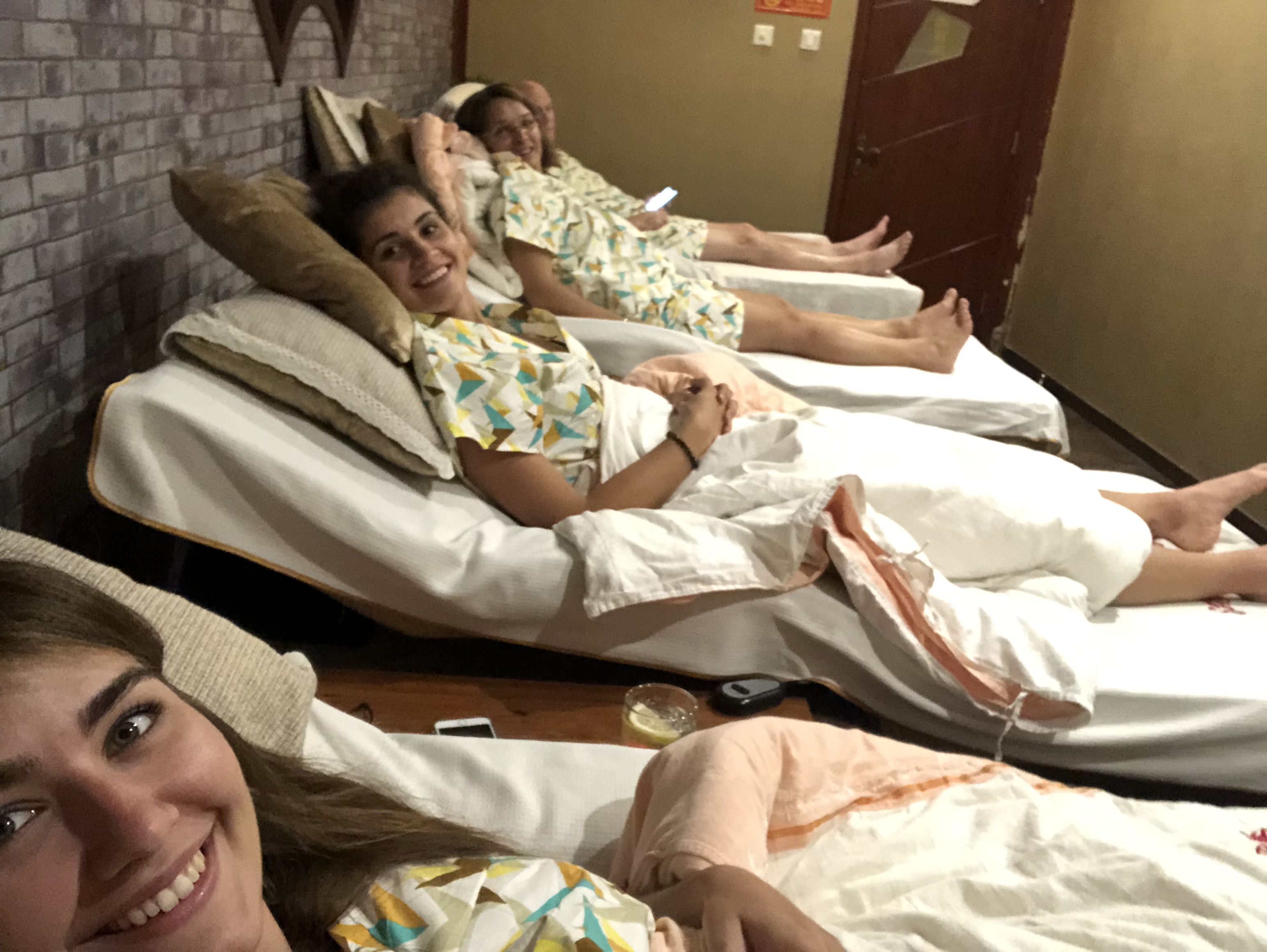 Les premiers jours, Nathalie est notre guide. Nous découvrons avec plaisir la vie d’expatriés, ses habitudes, ses repères, ses incompréhensions encore, que deux ans ne suffisent pas à résoudre tant le décalage culturel est grand. Les codes de politesse, l’alimentation, les habitudes journalières paraissent n’avoir absolument aucun point commun avec la culture occidentale. Un boucher français, quelques rares produits européens dans une supérette, des massages pour moins de dix euros, une bière devant un match de rugby dans un pub irlandais ou un Mojito miraculé sont donc toujours les bienvenus.