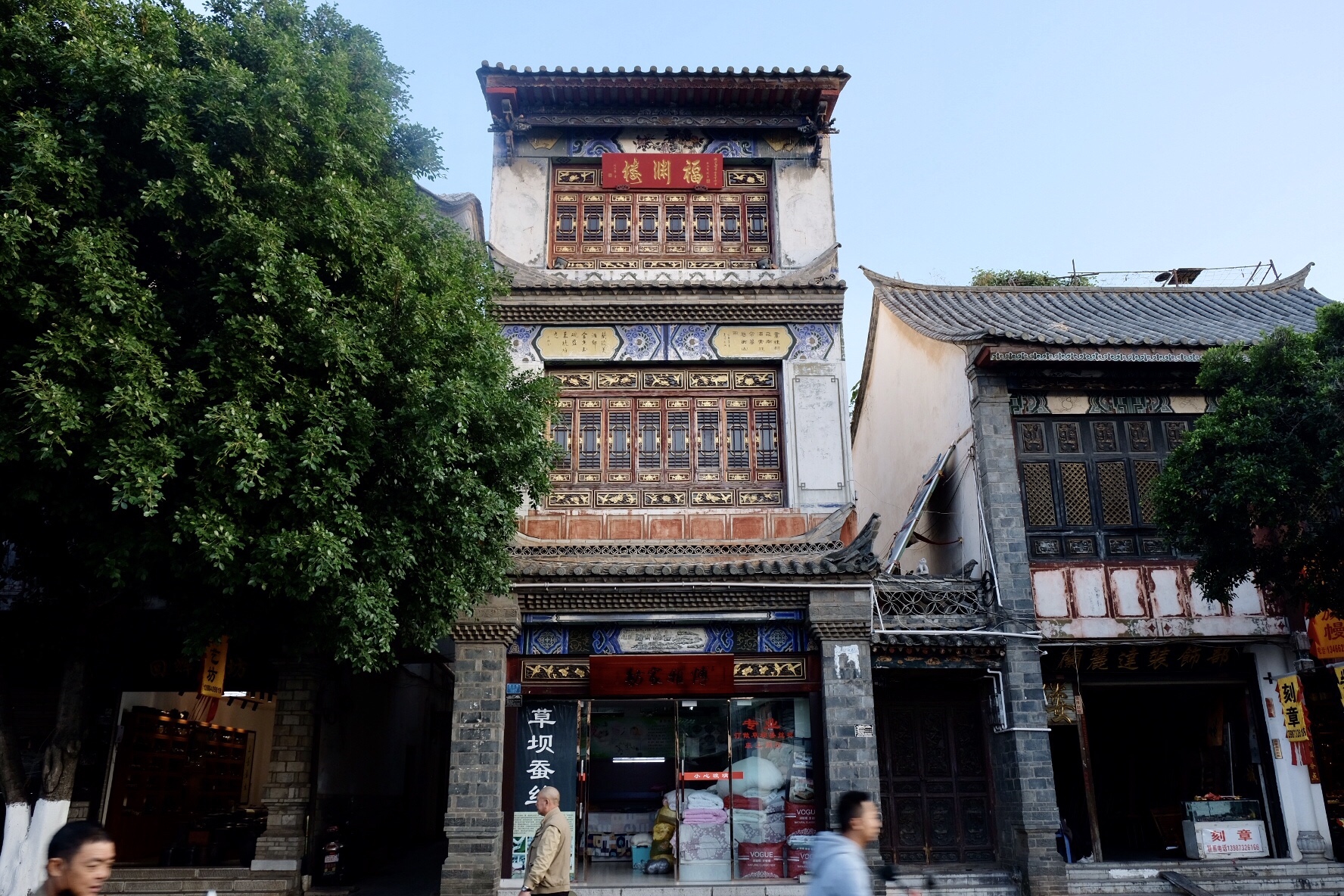 Je me réveille de bonne heure, déjeune avec trois Français retraités, et déambule à nouveau dans la ville. J’entre dans la résidence de la famille Zhu. Bâtie à la fin du XIXe siècle, cette maison est semble-t-il l’une des plus belles du Yunnan, et des mieux conservées. C’est un véritable labyrinthe, je me perds dans les cours, les jardins, les pièces, je passe et repasse sous des portes riches de détails variés, découvre un théâtre d’eau, m’enivre de la beauté des fleurs.